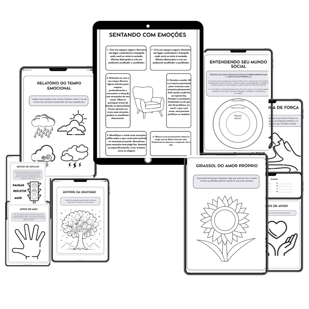 ➡️ Para terapeutas: materiais aplicáveis, intervenções estruturadas, fichas imprimíveis, roteiros de condução e ferramentas de acompanhamento real de evolução.
